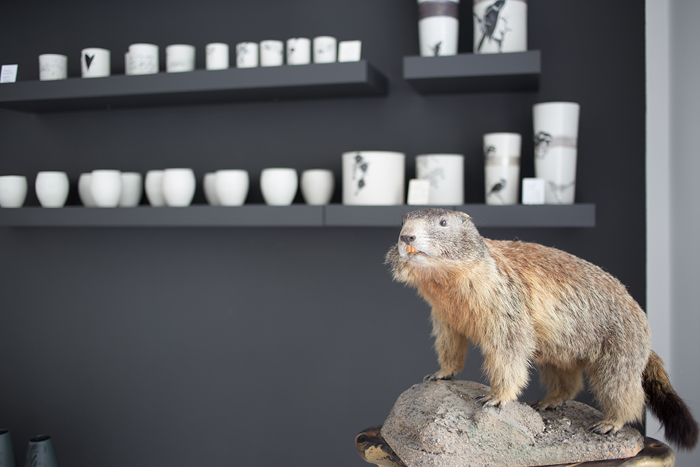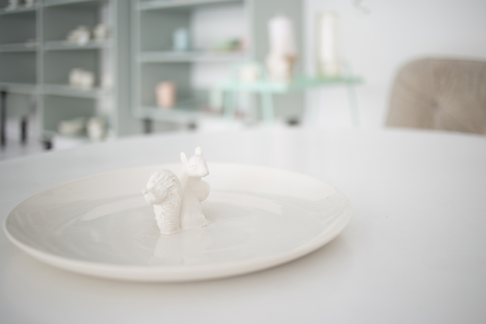 In addition to the Alice collection you can also find many other wonderful tableware, home accessories and jewelry in her brand new showroom in Vienna’s 4th district. The showroom is a treat for the eyes – white, black and grey walls, a white wooden floor, a stucco ceiling, a cosy corner with a vintage touch, stunning chandeliers, a group of pendant lights above a perfectly laid table and so many beautiful details more… Moreover, you can take a sneak peek at the atelier and the soon to be released collection „animals of the forest“. A visit and a purchase are definitely worth it!
